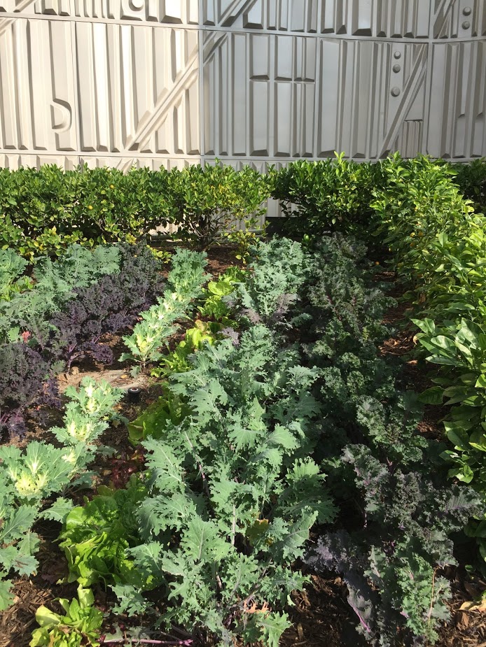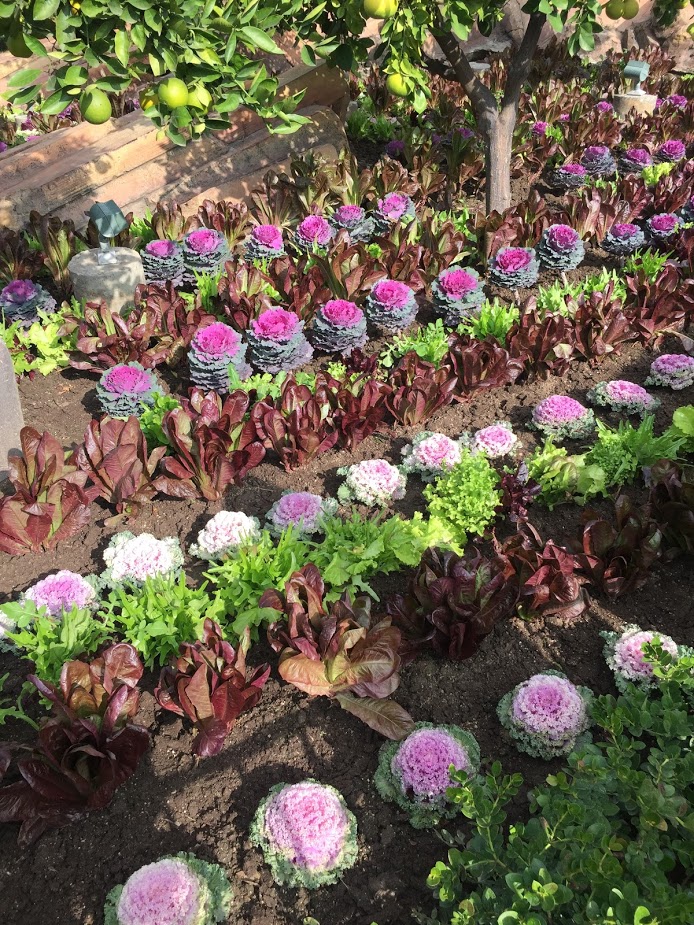 Acá otro ejemplo… según alcancé a ver eran diferentes variedades de lechugas y los arbustos que delimitan ¡son en realidad naranjos pequeñitos!