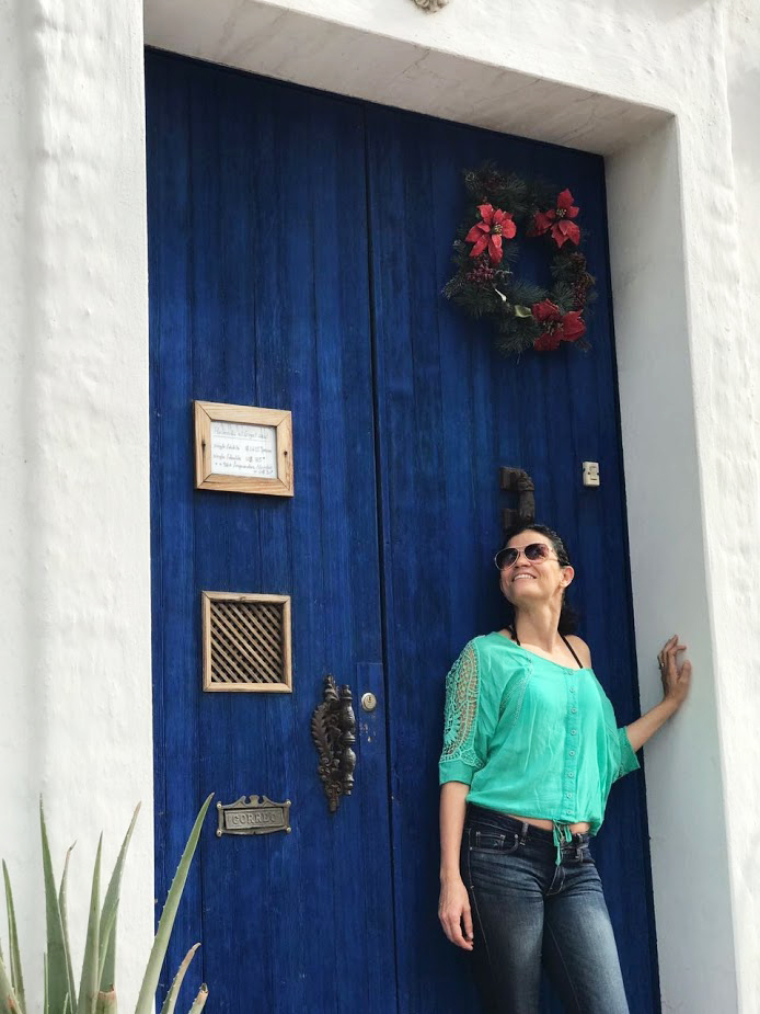 Take a look at this beauty! I wanted to take it all with me, the old, white door, the blue washed floor, the old bricks, the window, the rusted sign… even the wild plant peeking through the rocks and the bulb-less socket above the door.